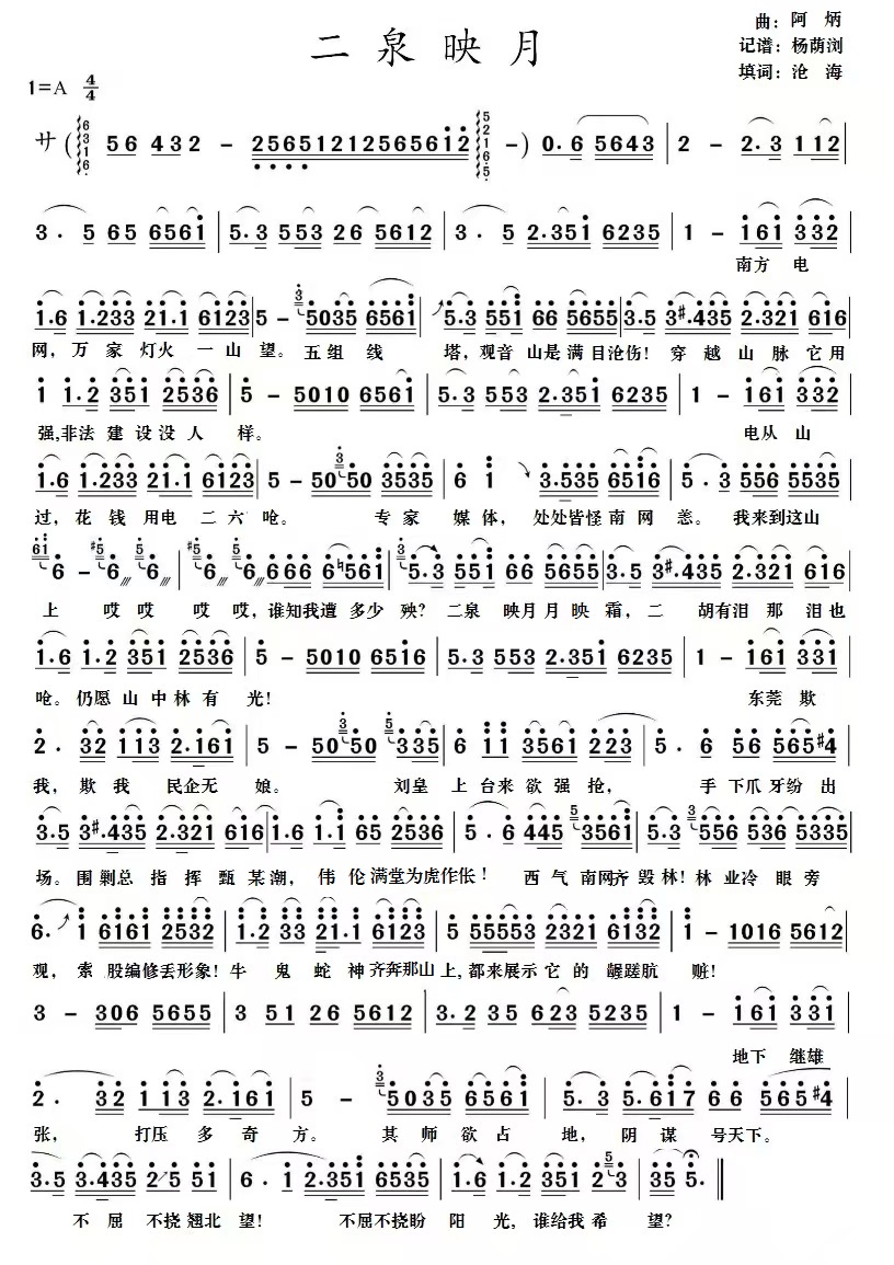 沧海作词的《二泉映月之观音山》引关注