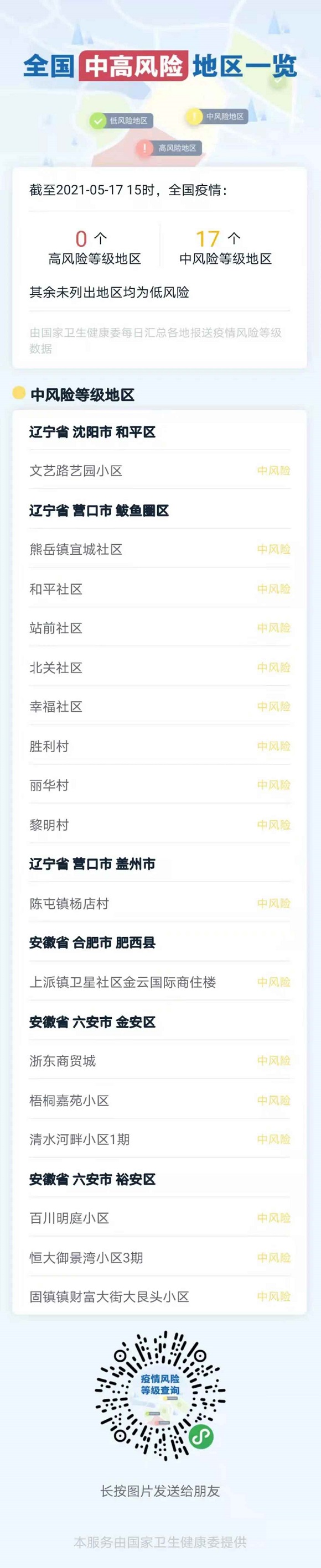 5月17日0-24时,新增确诊病例1例(为之前坦桑尼亚输入的无症状感染者转确诊),新增无症状感染者1例(坦桑尼亚输入),已排查密切接触者均已实施集中隔离。截至17日24时,累计报告确诊病例1356例(境外输入病例137例)。