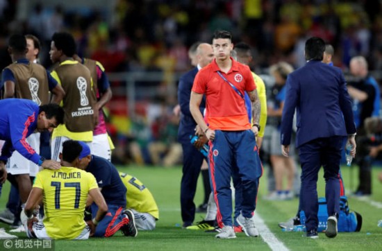 第三场对阵塞内加尔,J罗的经历无疑是苦痛的,虽然球队最终1-0小胜并且以小组头名出线,但是J罗在比赛的第31分钟就因伤离场,为球队的淘汰赛前景蒙上了一层阴影。果不其然,顺利晋级淘汰赛的哥伦比亚首战面对强势的英格兰,J罗因伤而没能进入大名单,这似乎从一开始就预示着哥伦比亚艰难的比赛进程和悲情的结局。