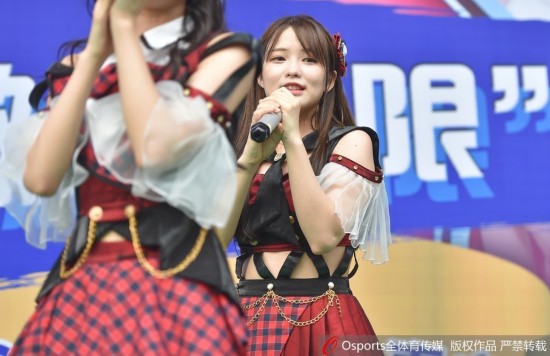 2018年7月4日,辽宁沈阳,SHY48女团化身足球宝贝为世界杯赛事热舞大秀青春活力。