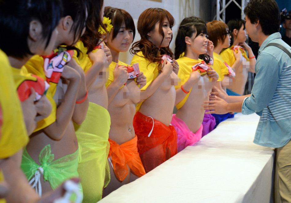日本“摸胸募捐”慈善活动当地时间2014年8月30日,日本东京,9名女优参加“摸胸捐款”慈善活动。据报道称,