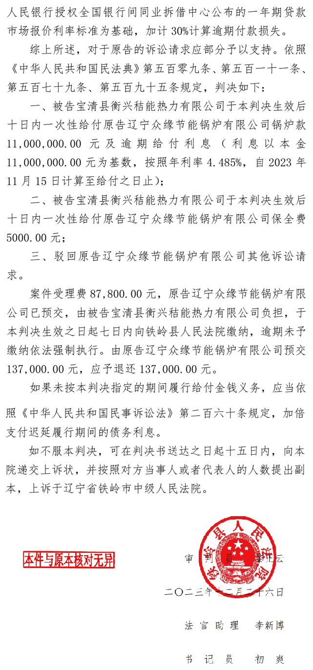 | 黑龙江民生企业投诉被辽宁法院违规查封引发群体事件 日前,法讯网收到了黑龙江宝清县衡兴秸能热力有限公司法人王艳平发来的求助信,反映公司在毫不知情的情况下被辽宁铁岭县人民法院将公司的三家银行账户各自查封1900多万后,无法购买供热燃料及无法正常经营而引起大批居民到政府部门上访并上传至抖音、快手等平台,造成极坏影响…… 法讯网全文发出求助信,小伙伴们有什么看法? 求助信 中央媒体: 我是黑龙江省宝清县衡兴秸能热力有限公司法人王艳平,身份证号码:230521197403032****,电话号码:18904691*** 我公司是为黑龙江宝清县3万多户居民供热的民生企业,于2023年11月13日被辽宁众缘节能锅炉有限公司在双方债务并未确定实际数额的情况下,以欠款为由恶意起诉至辽宁省铁岭县法院,并查封我公司三个银行账户各自1900多万元。该院在未对案件实体审查的前提下受理此案,并查封我公司账户近6千万元。 ![]() 对方起诉请求1100万元,法院却查封了建设银行的1920万元,还查封了邮政银行、农行账户各自1900多万元! 该院未下达裁定书,在11月27日我公司在购买原煤时发现账户被冻结并向银行询问原因时,银行回复是辽宁省铁岭县人民法院查封后,我们通过拨打12368查询案件主审法官黎正云法官办公室电话询问查封原因,询问后才通过短信方式给我公司下达起诉状,我公司法人王艳平询问为什么对我公司银行账户查封十天后也未通过任何形式告知我公司及我本人,经过公司法人询问,法庭黎法官回答我庭工作人员少,未能及时通知望理解,我本人认为法庭在受理此案过程中不作为、慢作为,程序有失公正。我公司向具体审理此案的该院腰堡法庭申请提供解除担保申请书,并提供了本企业价值五千余万元的资产评估报告书做担保,黎正云法官当时同意要求我方提出书面替换保全申请,高波庭长不同意替换保全申请,未被允许,后又向法庭申请由具有资质且在全国及辽宁省都有成功担保案例的担保公司对我公司账户进行反担保时,高波又以原告方不同意为由拒绝。原告保险公司可以担保,我公司提出用有资质的并有成功反担保案例的担保公司进行担保,多次跟高庭长沟通企业无法经营,热用户上访事件,高波庭长未理会。请问法庭是听原告还是听被告,这种说词能公平公正吗?根据最高人民法院出台的【民事诉讼法】第一百零七条规定:“财产纠纷案件,被申请人提供担保的,人民法院应当裁定解除保全”。该法条的法律释义:规定在征求原告方意见时,只需要履行告知程序,而非必须原告方同意。 而该庭正是以原告方不同意为由拒绝,导致我公司现无任何资金。 ![]() 极寒天气因查封无法保证温度,导致大量居民上访视频截图 购买供热燃料及无法正常经营,供热锅炉也无法正常运行,面临停热局面,近期黑龙江省极寒天气夜间气温达到零下-30~-34℃,因无燃料,当地居民室温只有零上5~10℃,居民生活苦不堪言。大批居民到政府部门上访并上传至抖音、快手等平台,给当地政府及我公司造成极坏影响,已被省住建厅通过视频会议通报,被双鸭山市住建局约谈,现恳请有关部门尽快落实12月15日习近平主席提出的保供暖、保民生的讲话。 高波庭长于辽宁众缘节能锅炉有限公司法人杨武英关系密切,影响司法公正。杨武英多次示意我本人在当地官司永远打不赢。 ![]() 经过本人多次向法庭催要判决结果才于2023年12月28日收到了2023年12月26日生效的电子版判决书。2023年12月26日铁岭法院执行庭两位工作人员到宝清县中国人民建设银行宝清支行降低查封额,由原查封1920万元降低为1100万元,部分解除了820万元。 希望中央媒体给予关注,曝光不作为、慢作为的庭长高波,法官黎正云。希望法律给予公平公正,别带有歧视外乡人的判决。 以上所述全部属实,如不属实本人承担全部法律责任。 求助人:王艳平 宝清县衡兴秸能热力有限公司 2023年12月28日 ![]() 据衡兴秸能热力有限公司查了一下,这个众缘节能锅炉有限公司在辽宁有50多起案件,基本上都是在这个法庭,且都是胜诉。而本案众源公司起诉标的额为1100万元,但法院却查封了衡兴秸能热力公司的几个银行账户达几千万元,导致公司无法运营而造成恶劣的影响,如此损失谁来承担责任?! 而对于本案的一审判决,衡兴秸能热力公司表示会上诉以维护自己的合法权益。 本网将继续关注此事的后续情况。 在只解封了800万元后,公司法人再次联系黎正云法官,在12月29日的通话录音,听听吧?! |