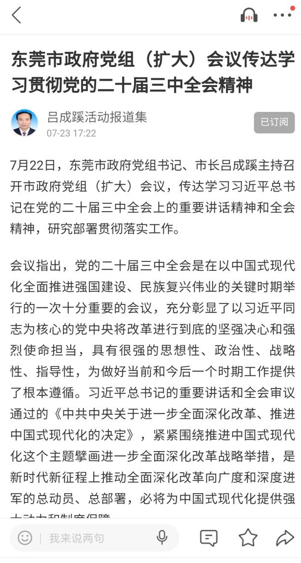 东莞市学习贯彻三中全会精神,不作为、乱作为现象该怎么处理呢?! 独立撰稿人李海波 7月22日下午,东莞召开全市干部大会,传达学习习近平总书记在党的二十届三中全会上的重要讲话精神和全会精神。