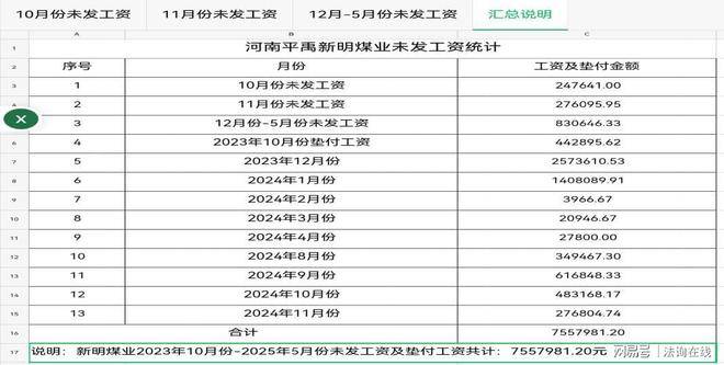 要过年了,河南平禹新明煤业那些农民工能拿到血汗钱过年吗 马上有钱!是国人们马年的最大愿望。都到腊月二十了,不少打工者已经回到了家乡,家家户户都在等待着过新年。但在河南平禹新明煤业公司,四川巴中的谭治国和几个工人还在苦苦等待着他们的血汗钱。 平禹新明煤业拖欠农民工工资在网上闹得沸沸扬扬,公司承诺的在2025年底之前发放也没有兑现。 之后撰稿人通过豫事办投诉到禹州市田会卿市长,在撰稿人指出是代农民工投诉后再次回复却依然说是不欠撰稿人工资,只有6个人30多万元没有发。并且说明:矿井民营方资金准备充足!而对于其他的20多名人员则是说非矿井人员,涉嫌工资造假,矿井已报警。 真是只有6个人工资没有发放吗?没有发放的几个人真是银行卡存在问题吗?在禹州市应急局领导给煤矿股东谭治国电话时,谭治国对此质问:“为什么发了几年的工资,银行卡都没有问题,现在怎么有问题了呢?” 真是存在工人冒领工资问题吗?报警了警方怎么调查处理的?目前还没有听说有农民工因此被处理,这是怎么回事呢? 图为周志华的安全帽和柜子。 看看,20多名重庆籍的农民工代表周志华没有拿到工资,他经过了矿方的培训,有工牌有柜子,在煤矿均有上班但怎么在调度里查不到呢?而周志华透露他们在井下培训时就是走过场而已:人、自救器、定位仪应该是一致的,当时有人在培训而有人在上班,所以培训5人就有2个人用的自救器、定位仪是别人的。同时,平禹新明煤业公司在培训考试时都是把答案写好了才发给培训人员。 1月11日,谭治国通过豫事办向禹州市田会卿市长提交了《关于平禹新明煤业公司复工复产验收的情况反映》,信里提出了5个诉求。之后禹州市应急局干部电话谭治国,而谭治国对其回复的五个问题都提出了自己的相应理由,但豫事办回复仍旧为应急局干部的单方面答复,丝毫不理谭治国的反映。谭治国在评论为极不满意后再次调查后回复依旧如前,只是将新来的采煤包工头王玉明的股东身份改为:合作伙伴。 谭治国提供的未发工资表显示的2023年10月-2025年5月未发工资和其垫付的资金为755多万元。 谭治国提供的平禹新明煤业2024年-2025年5月未发工资统计表 2024年10月工资表,有出勤天数应发工资和银行卡号。总共15页,计359人,其中有周志华应发工资12658.5元。 2024年11月未发工资表,其中有周志华应发工资12658.5元。 平禹新明煤业公司在1月24日的对账单显示,煤矿经营矿井仅支付了4589多万元,还下欠约700万元。既然民营方资金充足,为何不予以支付呢? 看看1月6日的《许昌日报》第二版“要闻”的公告吧,里面的公告显示拖欠的工人工资1173万元在2025年11月30日已全额发放。如果是这样,为什么那么多工人还多次到河南省信访局讨要工资呢?如此不负责任的公告,许昌日报审核了吗?再者,对于该版报道的《河南平禹新明煤业有限公司顺利通过复工复产验收 吹响2026年安全高效发展冲锋号》,谭治国表示是虚假新闻,将在春节后向河南省委宣传部举报。 1月26日,平禹新明煤业的农民工再次到河南省信访局讨要工资。 目前,谭治国和另外二个工人都还在禹州市等待了,希望能拿到一部分工钱,这样才能回到四川巴中的家,过年。 其实,煤矿将煤炭开采承包给谭治国,约定支付其开采资金每吨330元,工人工资等费用均由谭治国工队负责,只要矿方及时结算支付开采资金,就不会存在拖欠农民工工资之说,当然更没有冒领工资之说:因为这些,都应该由谭治国等人负责处理! 所以,解决新明煤业公司的农民工工资问题很简单,把应该支付给谭治国工队的开采资金解决了就可以!毕竟。你们也说了:目前民营方资金充足! 马年啊,马上有钱!衷心希望在新明煤业公司的那些川渝农民工能早日拿到自己应得的血汗钱,高高兴兴地过年!(撰稿人 李海波) |