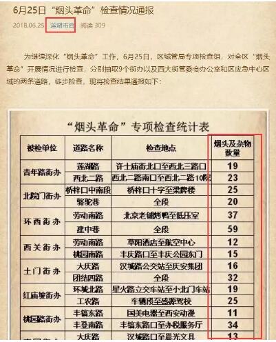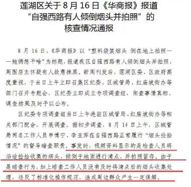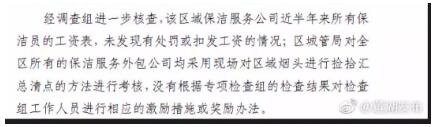 另外,这份官方通报还表示过去半年里当地的环卫工没有被处罚或扣发过工资,也没有任何会促使市容检查人员去故意倒烟头的奖励措施。