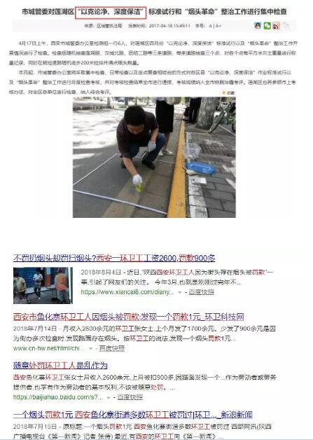 5. 实际上,西安从去年起一直在推行的“以克论净”的环卫政策,其实已经引起舆论很大争议和质疑,认为这个政策过于偏执和难为环卫工人。而西安市的雁塔区上个月更是才被曝光存在刁难环卫工人“一个烟头罚一元”的情况。可些充满争议的环卫政策和管理办法为啥当地还要执意推行?