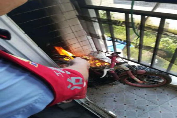 经了解,当日,该居民房内只有一位老人和两名小孩在家,老人在房间里睡觉,两名小孩在玩耍时不小心将阳台的衣物点燃,一辆儿童自行车已被大火烧得面目全非,阳台洁白的墙面也已熏黑。如不是民警前来救火,老人还不知道自己家着火了。老人被民警勇往直前、英勇无畏的精神感动,紧紧握着民警的手说“你们真是我们爷孙的救命恩人呀!”。民警借机对老人一家及在场群众进行了安全防范教育,提高群众的安全防范意识。