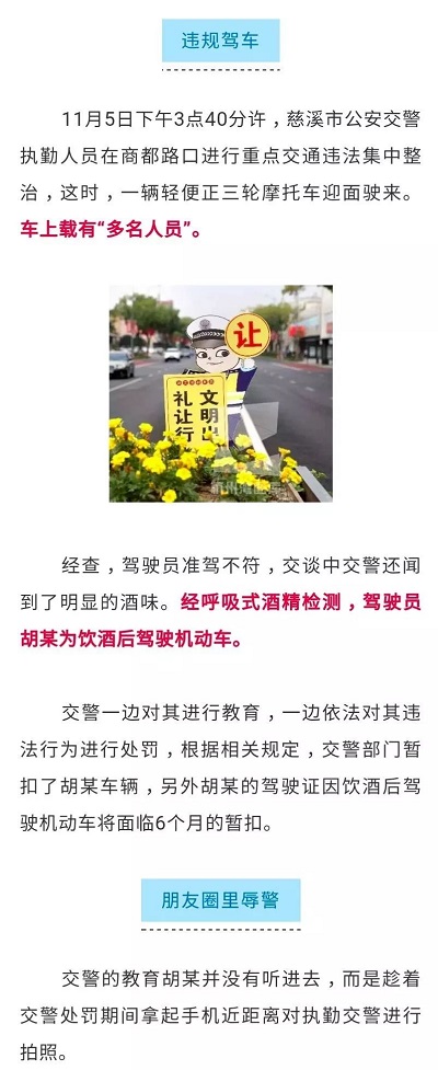 当天晚上交警收到了胡某这则朋友圈的截图照片,经执勤交警初步核实,发朋友圈的人正是当天下午因交通违法被处罚的胡某,就将此案移交至派出所进一步处理。