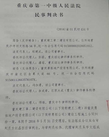 | 民事证据规则规定:“应当采信内容真实,有其他证据佐证、经过查证属实的证据才能作为判决的根据”。 国家在司法实践中,鉴于民事诉讼普遍地存在着当事人滥用诉讼权利的情形,恶意诉讼、虚假诉讼、诉讼中的虚假陈述、拖延诉讼、伪造证据等时有发生。故在新修订的新民诉法第十三条第一款规定:“民事诉讼应当遵循诚实信用原则。” 我是民营企业四川勇拓集团实业有限公司代表谭绍春,四川绵阳人,公司于2007年经重庆渝北招商引资而到重庆投资。下面我就在重庆市第一中级人民法院遭到的不公正待遇向你们反映,希望引起有关部门关注并核实处理。 强行多报承包款未达目的 恼羞成怒而起诉 2011年9月2日,我公司与重庆建工第二建设有限公司签订了勇拓.蓝澳岛高层1、2、3号楼及地下室工程《建设工程施工合同》,合同总价暂定一亿元人民币,工期总日历天数为480天,竣工日期为2012年12月31日。施工合同对工期延误的违约责任作了明确约定。重庆建工二建于2011年11月27日进场施工,但因资金短缺、施工组织不力、管理不善等原因,直到2016年12月31日工程才完成施工,工期严重迟延。在进行竣工审计时,四川勇拓集团实业有限公司发现重庆建工二建在施工过程中存在严重的偷工减料行为,且多处均没有按照设计施工图进行施工,虽然不影响房子质量,但是根据合同规定材料未按照指定品牌购买在竣工审计时要下浮20%进行审计,技术措施包干费(21项)含税为15元每平米。 在工程修建到封顶的时候,我公司按合同拨付工程进度款已经超付了的情况下,重庆二建用停工威胁我公司并申请重庆市第一中级人民法院进行查封。在后来调解过程中,重庆市第一中级人民法院在双方没有进行工程进度和工程造价确认,仅凭重庆建工二建单方报去的工程进度造价又作出荒唐调解,要求我公司再支付了1000多万元,但是收到钱后仍然没有复工。建委托管印章后,双方在没有对账、没有决算的情况下,重庆建工二建就将9000多万元不到1亿元左右的承包款虚报到1.41亿多元,并强行要求四川勇拓集团实业有限公司盖章认可。因为我司不认可这个承包款,于是重庆建工二建就申请法院查封了已经修好的房子(包括已经销售出去了的100多套房子),导致退房赔款和因无法卖房子资金链断裂。四川勇拓集团实业有限公司作为业主方,因重庆建工二建的工期迟延无法预期向购房人交付房屋、回笼资金,被迫向第三方融资以维持项目的资金投入。为此向购房人支付了迟延交房违约金8507773元、向融资债权人支付了利息损失98331028元(共计损失合计106838801元)经济上遭受巨大损失。 因没认可重庆建工二建所报的1.41亿工程款,于是2016年5月31日,重庆建工二建一纸诉状反告我公司要赔偿他们违约金、停工期间的工人工资、机械设备租金损失等共计3096.18万元。 采信虚假证明材料,我司请求中止审理置之不理 重庆市第一中级人民法院在审判时,采用了《会议纪要》,而该《会议纪要》是一审判决确定延工责任分配的重要依据,另一方面也是计算延工损失确定计算时间的唯一证据。也就是说,没有《会议纪要》,本案难以确定工程延工责任的过错方,同时不可能确定延工的时间,这将导致司法鉴定无法推进。