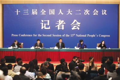 昨日上午,十三届全国人大二次会议举行记者会,财政部部长刘昆,副部长程丽华、刘伟就“财税改革和财政工作”回答中外记者提问。新京报记者 彭子洋 摄