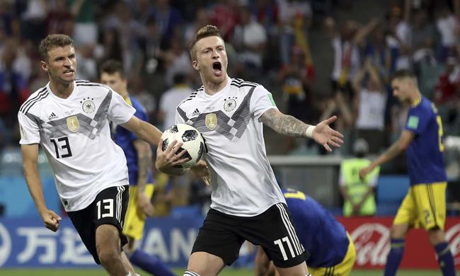 北京时间6月24日2时(俄罗斯当地时间23日21时),世界杯F组第2轮第2场在索契展开较量,德国2比1逆转绝杀瑞典,两队同积3分。博阿滕禁区内疑似推倒贝里逃过点球;鲁迪因伤退场。克罗斯传球失误,托伊沃宁首开纪录。下半时,替补出场的戈麦斯助攻,罗伊斯打进世界杯处子球扳平。博阿滕两黄下场。补时阶段,布兰特打中立柱,克罗斯将功补过上演绝杀。详情》