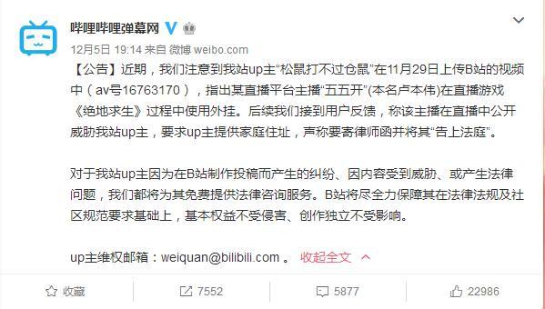 五五开到底有没有开挂?来看看近几日知名的B站大神怎么剖析五五开的操作来判断的。 地址:https://www.bilibili.com/video/av16867741/ B站up主“松鼠打不过仓鼠”首当其冲,竟然还受到了五五开的“律师函”威胁