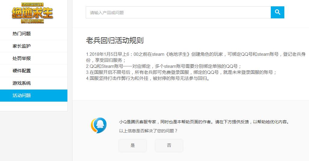1.2018年1月5日早上6:00之前在steam《绝地求生》创建角色的玩家,可绑定QQ号和steam账号