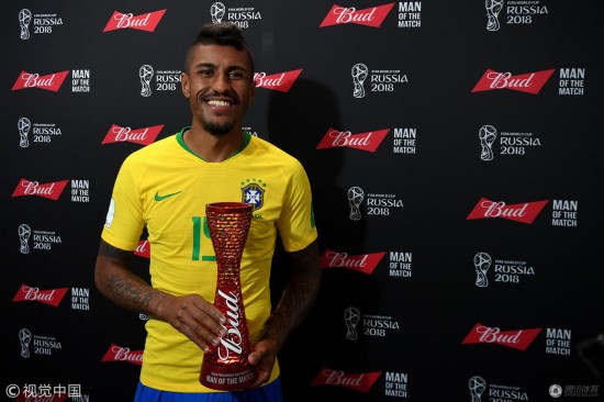 2018年6月27日,俄罗斯,2018俄罗斯世界杯小组赛E组,塞尔维亚0-2巴西。保利尼奥当选全场最佳球员。
