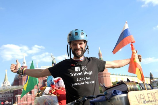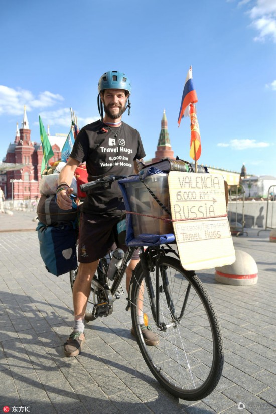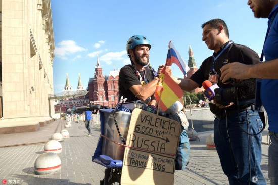 腾讯体育讯 小组赛刚刚结束,来自西班牙圣地亚哥的球迷骑行6000多公里抵达俄罗斯,他正好可以赶上看西班牙的淘汰赛