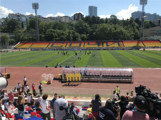 虽然采访世界杯的媒体是可以进入圆湖基地,但同样有限制时间,他们只在俄罗斯队公开训练的时间对媒体开放,球队的公开训练时间每天在11点半开始,训练之后会有两个球员的采访,采访之后,基地只对媒体开放到下午两点,两点之后全部清场,任何媒体都不能在这里停留。这也是为了保护整个圆湖基地的安全问题。