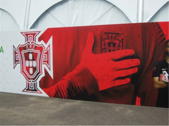 走进驻地,通过一段用细碎石子铺设的不算是道路的道路,就来到了临时搭建而成的新闻中心,新闻中心之外是葡萄牙队所有23人肖像照组成的大横幅,每次来到驻地,这组照片横幅都会成为各国记者出镜和合影的最佳去处。