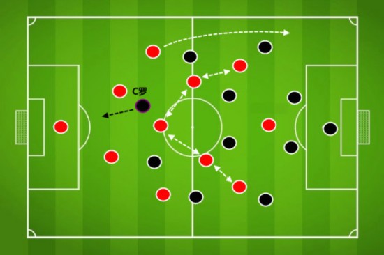 这个阵型的好处在于进攻端给予了前锋更多的支持,不过在防守端却也留下隐患。因为防守端球队落位三后腰,他们集中于中路区域,导致两翼空间较大。俄罗斯没有边锋,无法有效利用,但是这个问题对于葡萄牙来说是不存在的。