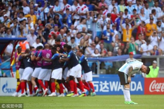 6月30日,2018年世界杯1/8决赛第一场比赛在喀山竞技场展开角逐,法国4比3力克阿根廷,率先晋级八强,阿根廷提前回家。