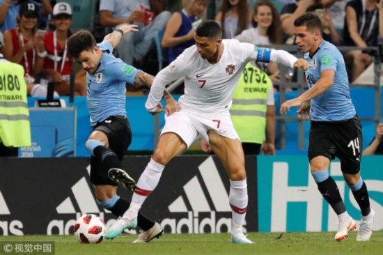 C罗遭遇包夹 他说,我知道热门不是我,不是葡萄牙,热门是梅西,是阿根廷……但C罗认吗?世界杯第一轮,面对强大的西班牙,他贡献了葡萄牙仅有的3次打在球门范围内的射门,甩出了帽子戏法,之后他又顶出一记精彩到犯规的头球,帮助葡萄牙占据了出线的绝对主动权!即便在今天被乌拉圭出色的防守体系严密盯防的情况下,他也一次又一次地与对手对抗,希望能够撞开乌拉圭严丝合缝的防线。 虽然C罗说自己没有冠军压力,但说他不在乎输赢,那是绝对不可能的。 “讨厌失败 失败会让我难以入睡” C罗一直是一个胜负心很强的人,他讨厌失败,早些时候一旦输球他都会显得心态失衡,甚至有一些矫情。也有很多人讽刺过他的这一点,比如说西班牙传奇门将苏比萨雷塔在几年前就劝其学会接受失败,而在本届世界杯上,和C罗重逢的前皇马主帅奎罗斯也暗讽C罗不赢球就耍小脾气,对他不尊重。