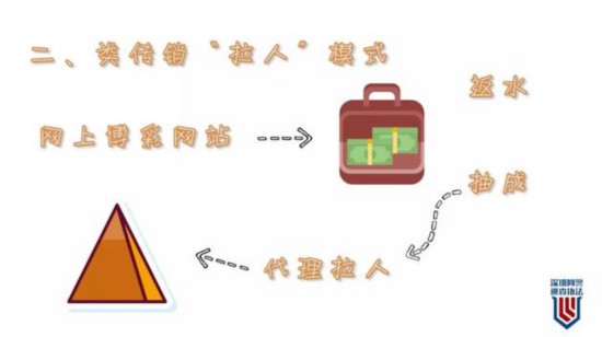 网上博彩网站以返水或抽成利诱,广招代理“拉人”,从而建立起类传销的金字塔模式。“模式与传销一样。”而且代理也分级别,一般分为总代理、普通代理、会员。 03黑掉网站挂博彩广告