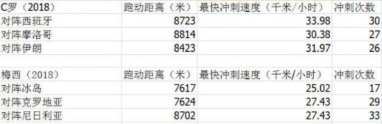 C罗和梅西在本届世界杯小组赛上的跑动数据。点击查看大图