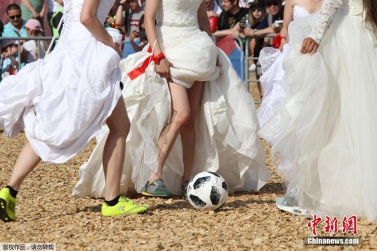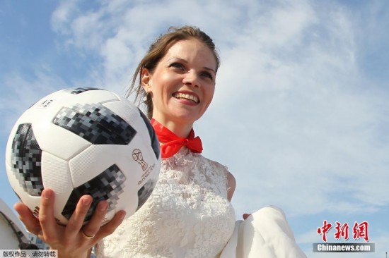 当婚纱遇见足球 喀山迎来“新娘世界杯”